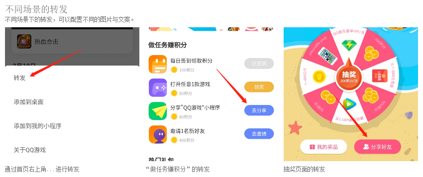 同一小程序/小游戏中,不同场景下的分享,需要配置不同的内容。